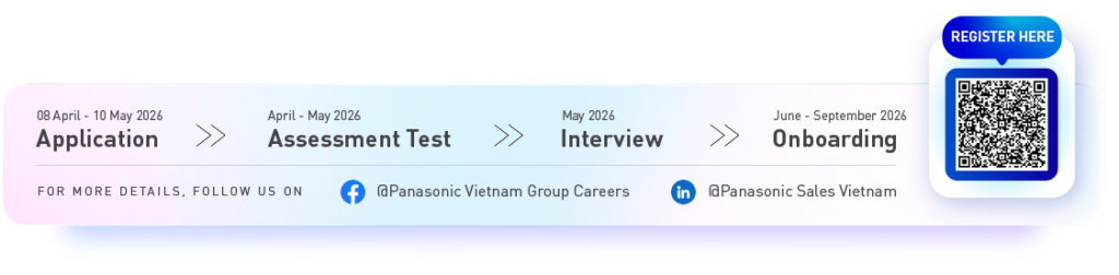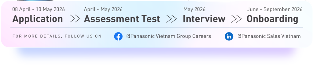 In addition to being equipped with specialized knowledge and skills, you will have the opportunity to become a full-time employee at Panasonic Sales Vietnam, based on your performance evaluation and the company’s actual recruitment needs at that time.